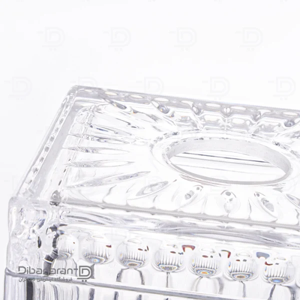 جا دستمال کاغذی شیشه ای کد T320، محصولی بسیار زیبا از جنس بلور بسیار نازک و شفاف است که از آن علاه بر جادستمالی میتوانید به عنوان دکوری نیز استفاده کنید. طراحی این محصول بهگونهای است که میتوانید از آن روی میز پذیرایی در منازل و دفاتر استفاده کنید.