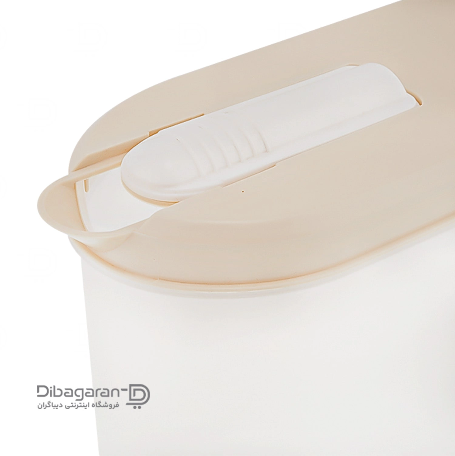 درب ظرف به گونه ای طراحی شده که به خوبی روی بدنه قرار می گیرد و از ورود رطوبت و آلودگی به داخل جلوگیری می کند. این موضوع نقش مهمی در حفظ کیفیت پودر شوینده دارد و مانع گلوله شدن یا فاسد شدن آن می شود. همچنین باز و بسته شدن درب بسیار راحت است و استفاده روزمره از محصول را آسان می کند.