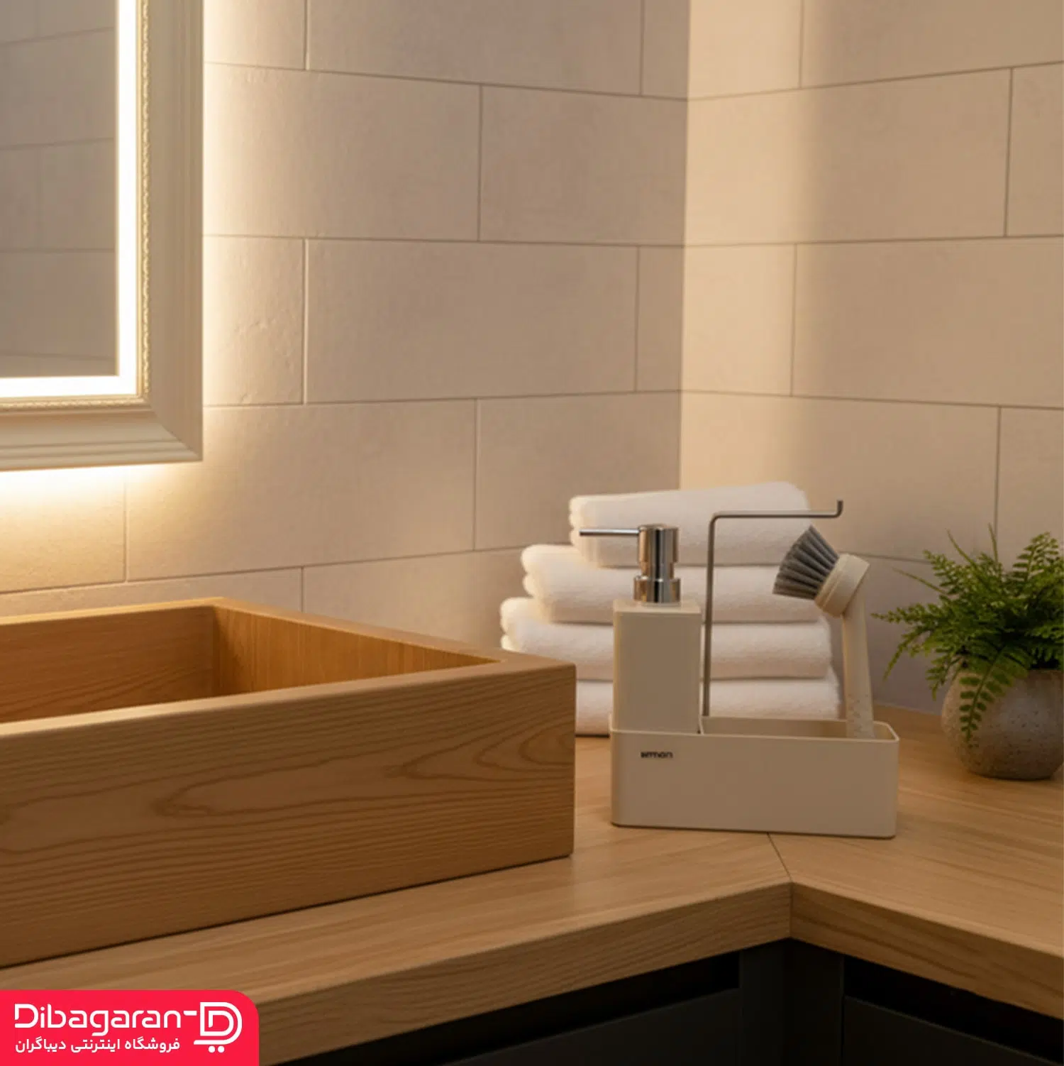 این ست شستشو و نظافت، شامل یک جعبه یا پایه نگهدارنده به همراه یک آویز، یک جای مایع و یک برس شستشو است. شما میتوانید از تمام اقلام این ست به صورت یکجا یا جدا جدا نیز استفاده کنید. بین جای مایع و فرچه شستشو، یک جای خالی وجود دارد که شما میتوانید اسکاچ خود را در آن قرا دهید. با این کار سینک شما مرتب و تمیز باقی میماند.