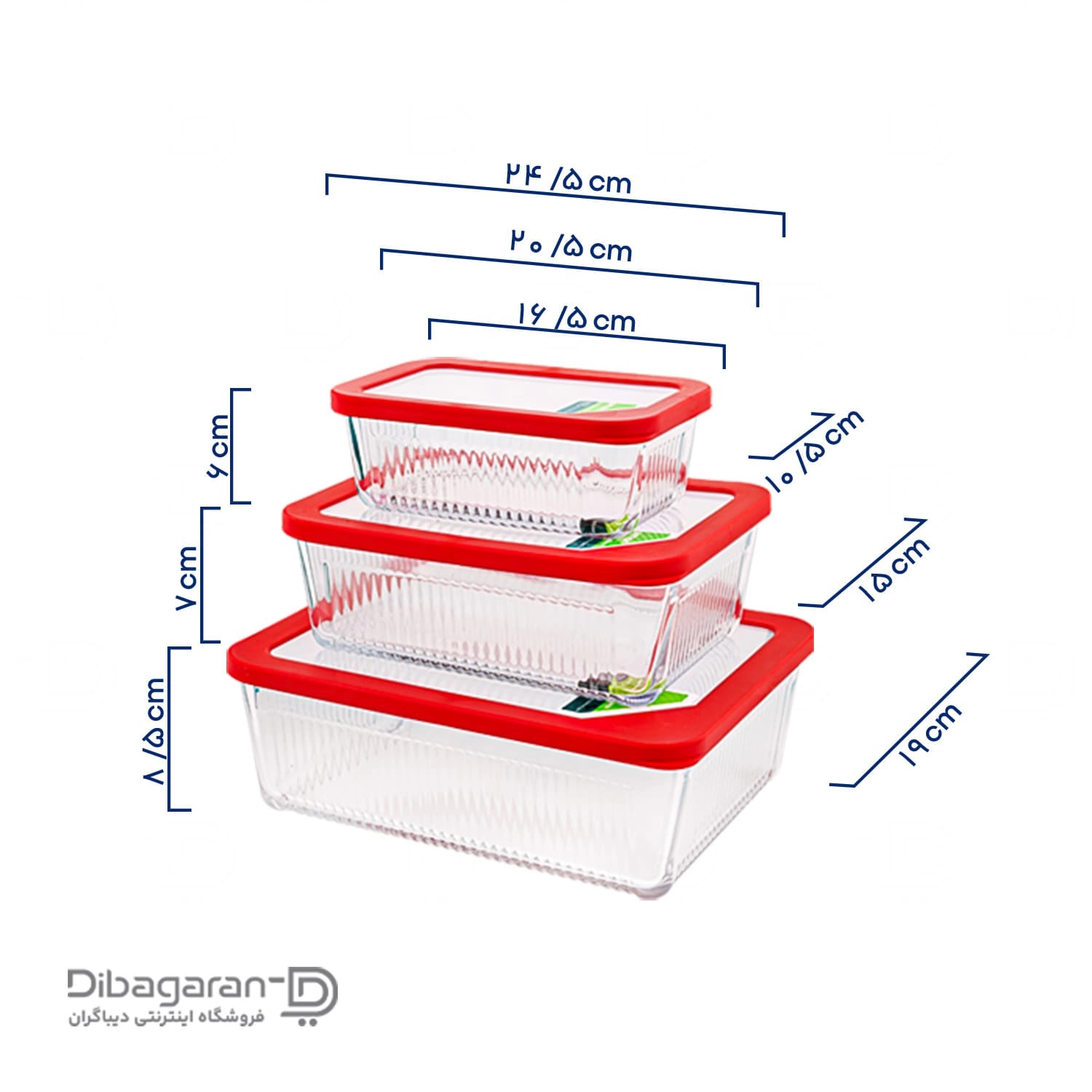 • سایز ظرف بزرگ : طول: 24.5 سانتی متر ، عرض: 20.5 سانتی متر ،ارتفاع: 8.5 سانتی متر