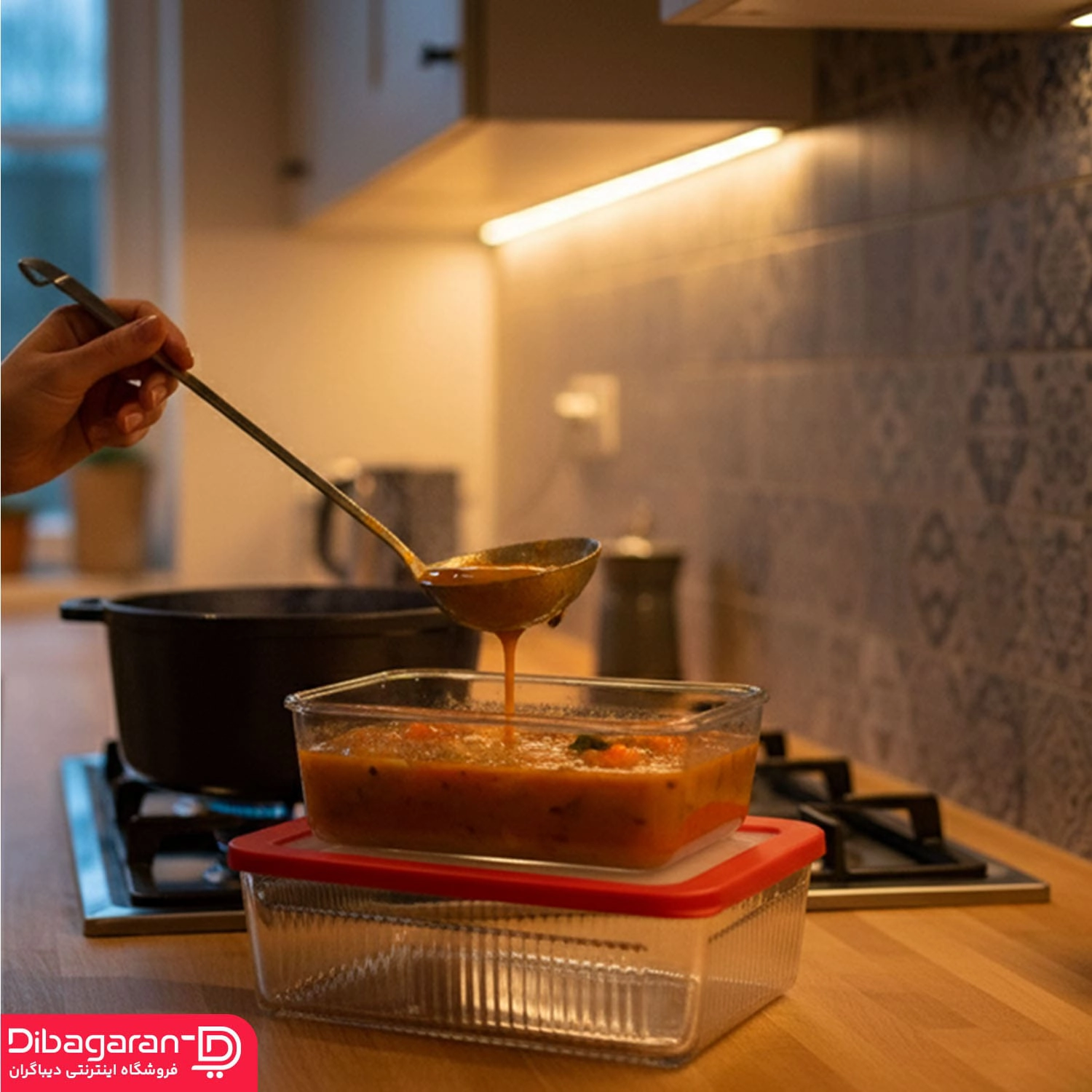 • سایز ظرف متوسط : طول: 20.5 سانتی متر ، عرض: 15 سانتی متر ،ارتفاع: 7 سانتی متر