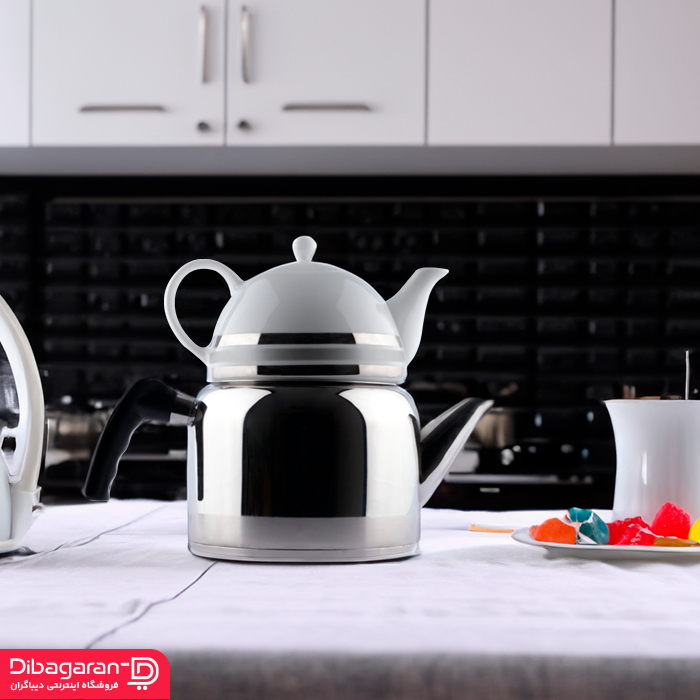 اگر دنبال یک کتری قوری استیل با دوام و طراحی مدرن هستید، کتری ریور انتخابی هوشمندانه برای شماست. بدنه کتری قوری استیل ریور کد 3889 از استیل نگیر 18/10 با ضخامت ۱ میلیمتر و پولیش عالی ساخته شده که ظاهری براق و مقاوم دارد. کفه چدنی ضخیم این کتری باعث میشود آب سریع به جوش آید و حرارت به طور یکنواخت در تمام کتری پخش شود. دسته مشکی ارگونومیک، کار با کتری ریور را آسان می کند. قوری چینی درجه یک با پوشش پلاتین همراه این محصول است، اما طرح قوری انتخابی نیست و به صورت رندوم از کارخانه ارسال می شود. ظرفیت ۲.۷ لیتری کتری و ۱ لیتری قوری این ست را برای استفاده روزمره و دورهمی ها بسیار مناسب کرده است. با انتخاب این کتری قوری استیل، کیفیت، زیبایی و عملکرد بینظیر را به خانه خود بیاورید.