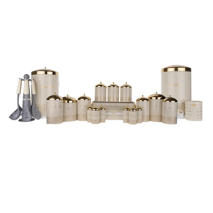 سرویس آشپزخانه 26 پارچه ریور کد 5228 رنگ کرم با درب طلایی تمامی ظروف نگهدارندهای که یک آشپزخانه به آن نیاز دارد را شامل میشود. نظم و هماهنگی اقلام آشپزخانه تاثیرگذارترین عامل در زیبایی آشپزخانه است. این سرویس آشپزخانه لاکچری در 4 رنگ عرضه میشود و شما میتوانید بنا به سلیقه و دیزاین خانهی خود یکی را انتخاب کنید.