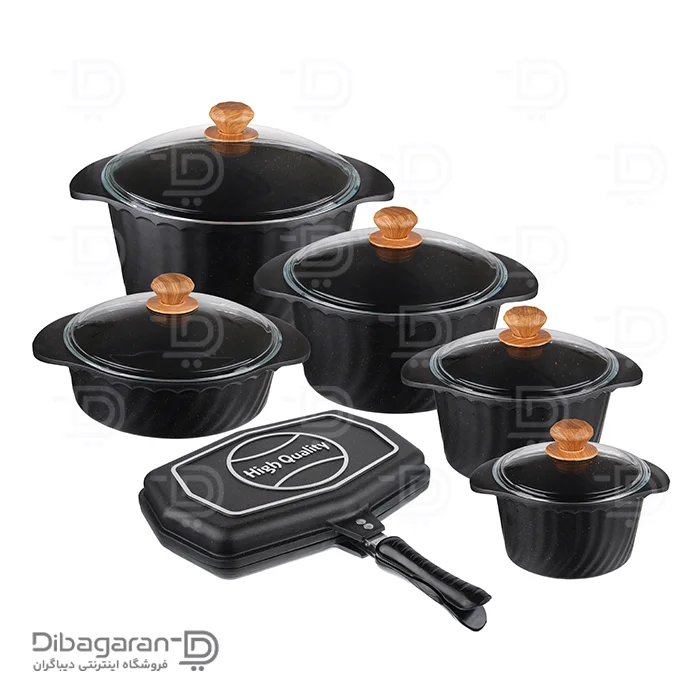 بدنه تمامی قطعات این سرویس از جنس آلومینیوم ضخیم با روکش گرانیتی چندلایه تولید شده است. این ساختار باعث توزیع یکنواخت حرارت، جلوگیری از چسبیدن غذا به سطح ظرف و در نتیجه، پختی سالمتر و سریعتر میشود. روکش گرانیتی داخلی علاوه بر مقاومت بالا در برابر خط و خش، خاصیت نچسب فوقالعادهای دارد که مصرف روغن را کاهش داده و شستوشو را آسانتر میسازد.