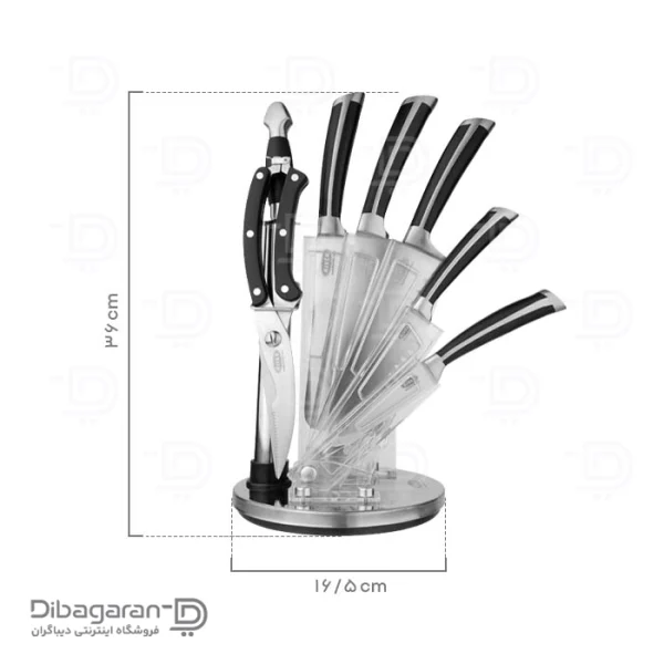 استند سرویس کارد و ساطور سنگین ریور، برای نظم دهی به این سرویس بسیار کاربردی است و از بهم ریختگی و آشفتگی چاقوها و قیچی موجود در این ست جلوگیری میکند.