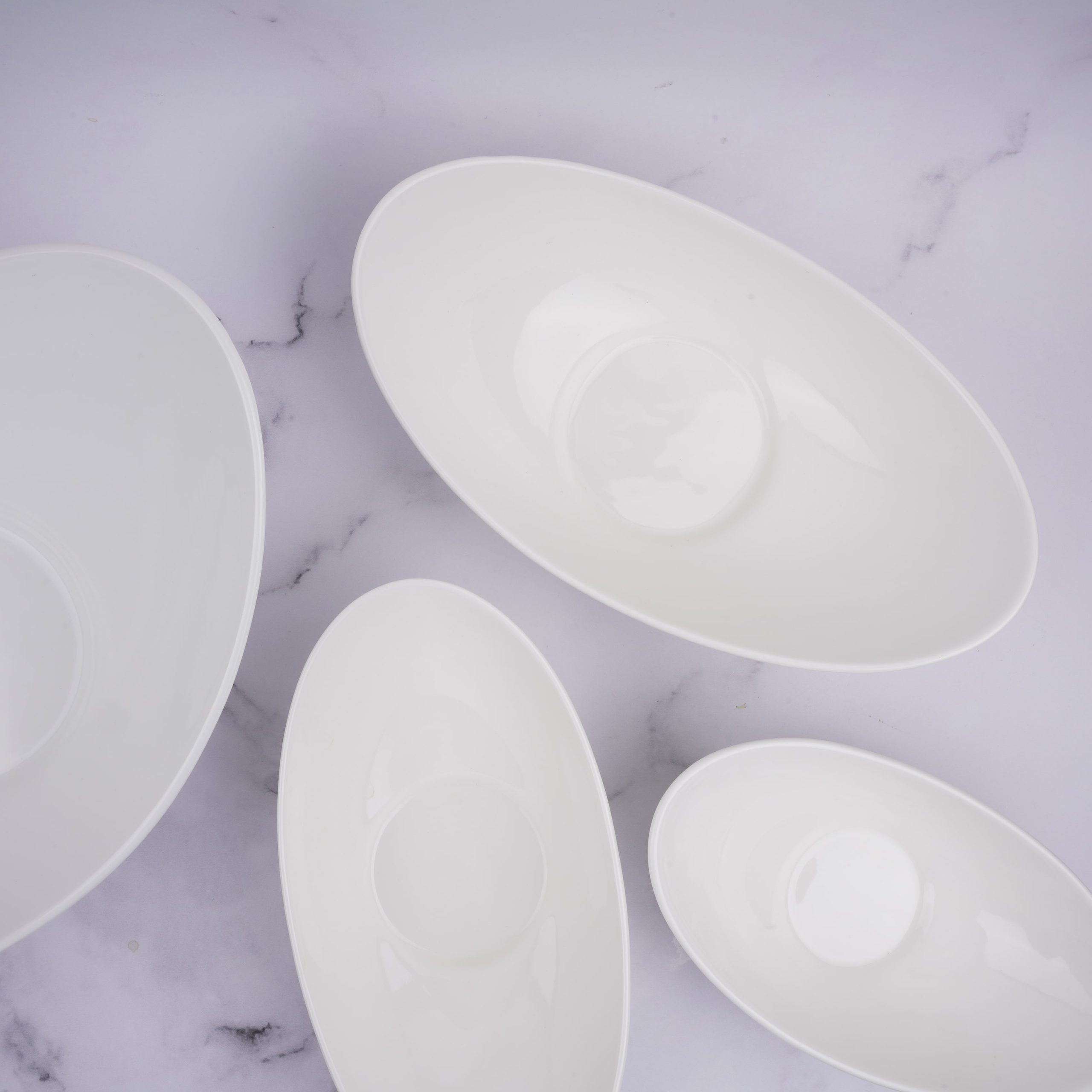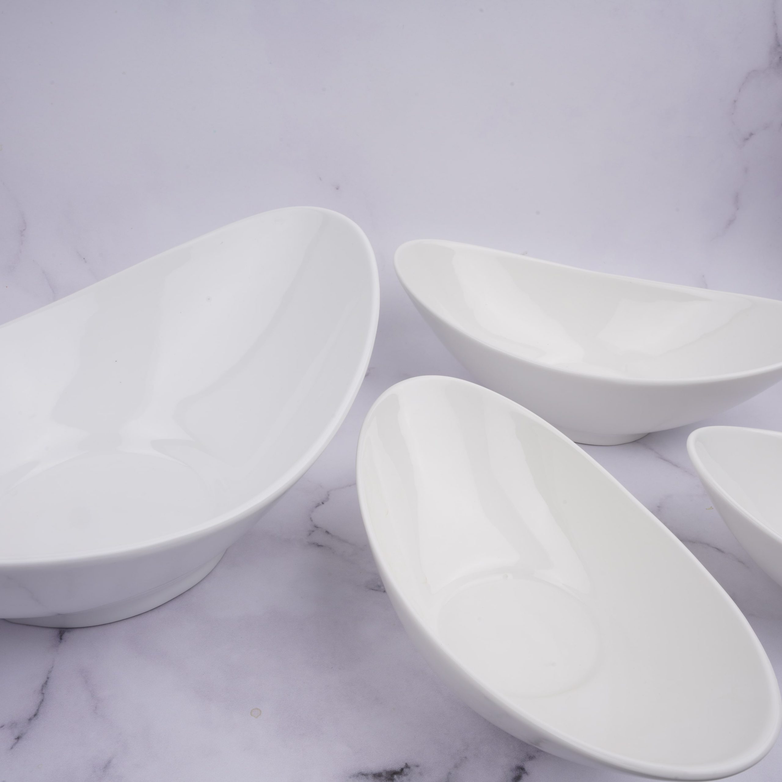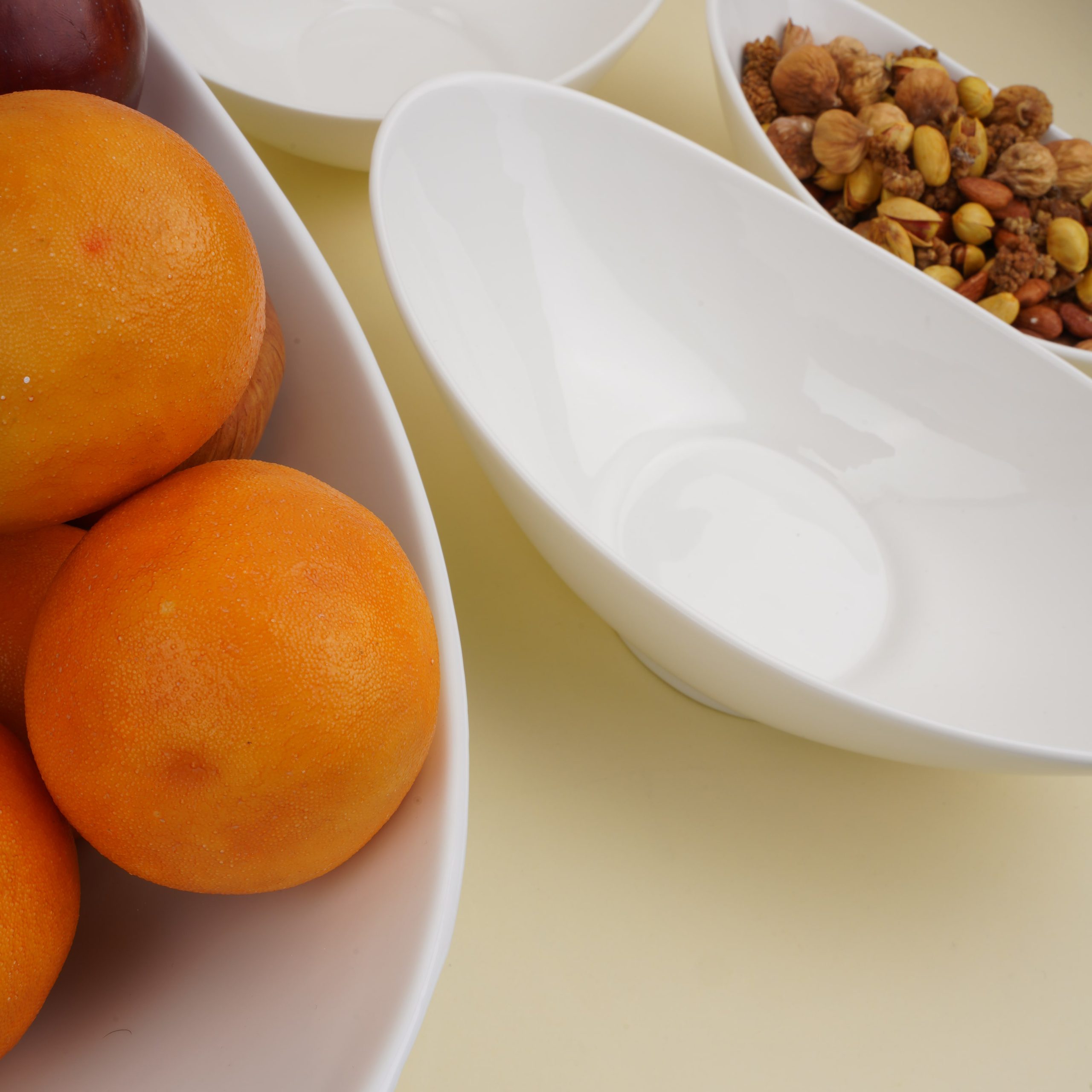 ظاهر قایقی این کاسه از اشکال مدرنی است که با سادگی خود زیبایی را نیز همراه دارد. غذاهایی که میتوان در این ظرفها سرو کرد. انواع سالاد، مثل سالاد کاهو، سالاد الویه، سالاد ماکارانی و حتی پاستا و اسپاگتی است. بسته به تعداد اعضای خانواده یا مهمانان میتوانید از یکی یا هر چهار کاسه استفاده نمایید. این کاسههای سالاد خوری در کنار هم میتوانند یک ست زیبا از ظروف سرو غذا را تشکیل دهند که کلاس میزبانی شما را چند برابر میکند.