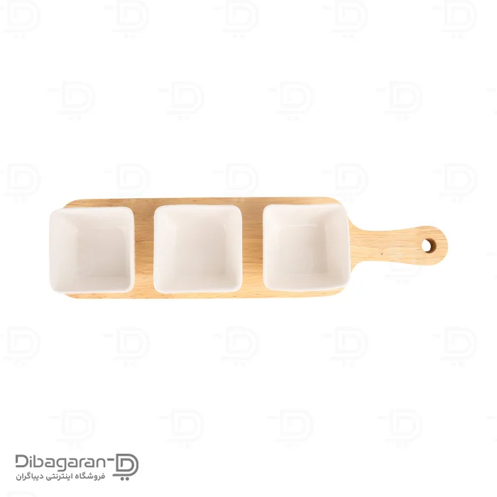 ظرف اردو خوری چوبی مربع در مدل 3 تایی از جنس چینی درجه یک و استند چوبی، گزینهای بسیار شیک و زیبا برای سرو انوع پیش غذا، دورچین، چاشنی، تنقلات و … محسوب میشود. که جلوه خاصی به میز غذا و پذیرایی بخشیده و سلیقه میزبان را به خوبی به رخ میکشد.