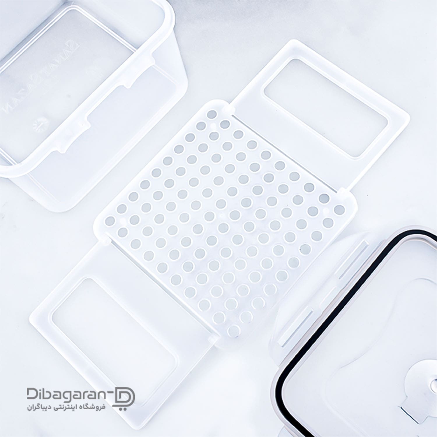 جنس بدنه و درب این محصول از پلاستیک شفاف و با کیفیت میباشد. پلاستیک بکار رفته در این ظروف آشپزخانه فاقد مواد مضر BPA است و با قرار گرفتن در معرض حرارت غیر مستقیم مواد غذایی را مسموم نمیکند. همان طور که گفتیم این نوع پلاستیک قابلیت استفاده در فریزر و یخچال را نیز دارد. از طرفی در برابر شوک حرارتی مقاوم هستند و به راحتی آسیب نمیبینند. محافظ سیلیکونی داخل درب این محصول نیز از هواگیری، کپک زدن و فاسد شدن سریع مواد غذایی جلوگیری میکند.