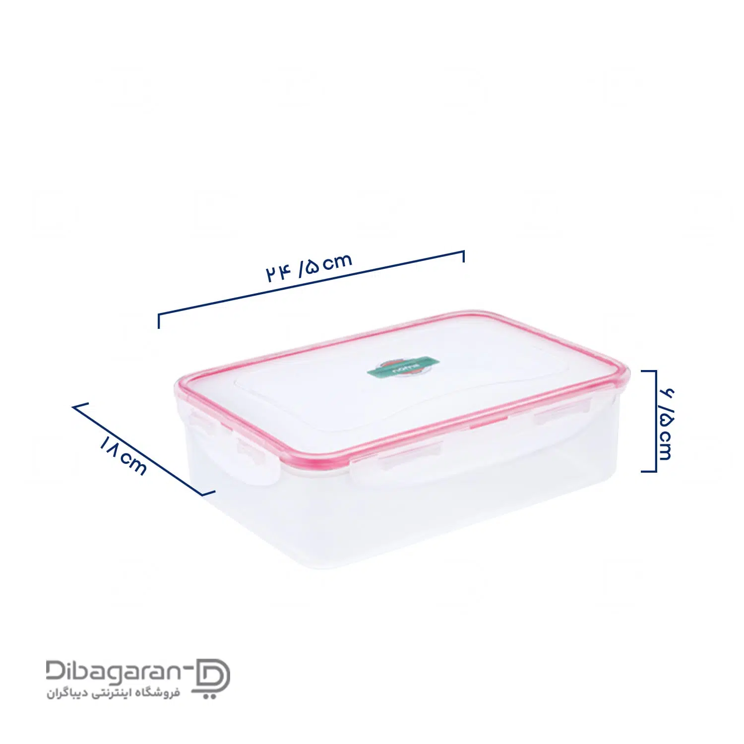 ظرف نگهدارنده لیمون 1.6 لیتر کد 788 یکی از محصولات محبوب برند لیمون است. این محصول دارای ابعاد 18*24.5*6.5 سانتی متر میباشد و همان طور که گفتیم گنجایشی معادل 1.6 میلی لیتر دارد. قفل هایی در چهار طرف ظرف نگهدارنده تعبیه شده تا درب به خوبی بسته شود و احتمال بیرون ریختن مواد غذایی از بین برود. همچنین این محصول کاربردی از کپک زدن و فاسد شدن مواد غذایی در صورتی که در یخچال یا فریزر از آنها نگهداری شود تا حد زیادی جلوگیری میکند. رنگ بدنه این ظرف درب دار شفاف بوده اما درب آن دارای یک محافظ سیلیکونی در دو رنگ قرمز و سبز میباشد.