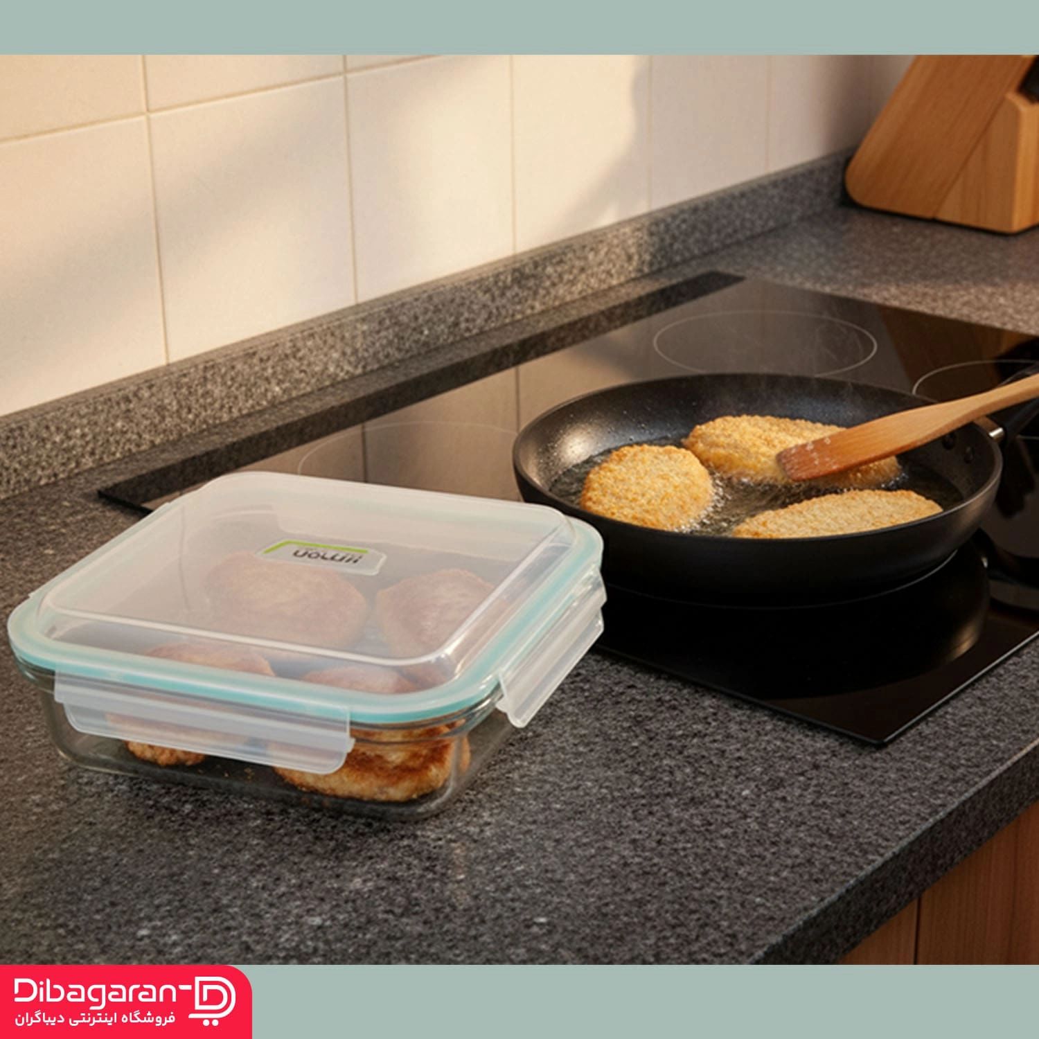 در استفاده روزمره، اولین نکته ای که جلب توجه می کند حس اطمینان درب ظرف است. درب قفل شونده به همراه واشر آب بند باعث می شود حتی مواد غذایی آب دار بدون نشت در یخچال یا هنگام جابجایی نگهداری شوند. برخلاف بسیاری از ظروف بزرگ بازار که به مرور زمان بو می گیرند یا تغییر رنگ می دهند، شیشه باکیفیت این مدل طعم و بوی مواد غذایی را حفظ می کند؛ همچنین رنگ بندی سبز، طوسی، سفید و کرپ باعث می شود این ظرف به راحتی با سایر ظروف داخل یخچال هماهنگ شود.