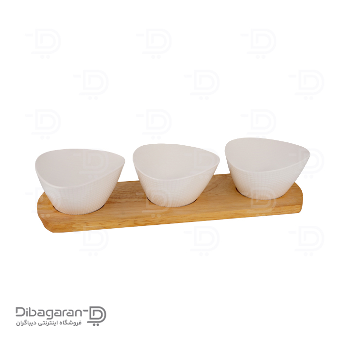 محصولی که مشاهده میکنید اردو خوری 3 عددی چوب چینی ریور کد 2720-B است. اردو خوری 3 خانه چوب چینی ریور در مدل بیضی شکل موجود است. این اردو خوری با ترکیب زیبای چوب بامبو و چینی سفید جلوه خاصی به میز پذیرایی میبخشد. اردو خوری چوبی، یکی از ظروف سرو و پذیرایی است که دارای پیالههایی از جنس چینی، به همراه یک زیره چوبی از جنس بامبو است. سینی چوبی که زیر این ظرف تعبیه شده علاوه بر ظاهر زیبا، بلند کردن و جابهجایی این ست از ظروف را آسان میکند.