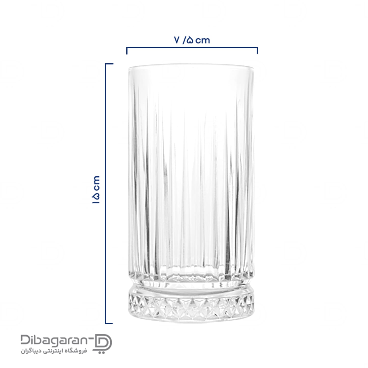 قطر دهانه و کف لیوان پاشاباغچه مدل الیسیا 4 عددی کد 520015 برابر با 7.5 سانتی متر است. قطر دهانه برای لیوان‌های بلند و باریک معمولا در همین حدود است. ارتفاع لیوان نوشیدنی شیک الیسیا 15 سانت است که ظاهر شکیل و مجلسی به آن می‌دهد.