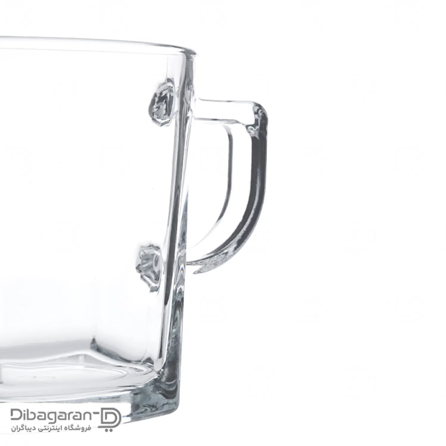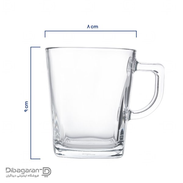 ماگ پاشاباغچه مدل کار مربعی 6 عددی کد 55223 دارای بدنهای شفاف از جنس کریستال است. همین ویژگی ماندگاری و طول عمر این محصول را به طور چشمگیری بالا برده و شما میتوانید تا مدتها از این لیوان استفاده کنید. اگر از بالا به این لیوان نگاه کنید فرم مربع مانند آن با دهانه گرد را خواهید دید.