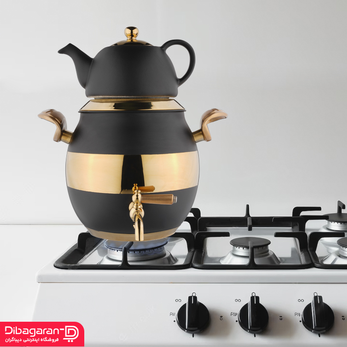 کتری قوری استیل ریور کد 2157 دارای طراحی خاص و منحصربهفرد و کیفیت مناسبی میباشد. همچنین دارای جنس استیل ضدزنگ با دسته باکالیت و قوری چینی میباشد. از آنجایی که جنس کتری این سرویس استیل باکیفیت و ضد زنگ است میتوانید با خیال راحت از این محصول تا سالها استفاده کنید. از طرفی این کتری و قوری دارای رنگهای طلایی و مشکی است.