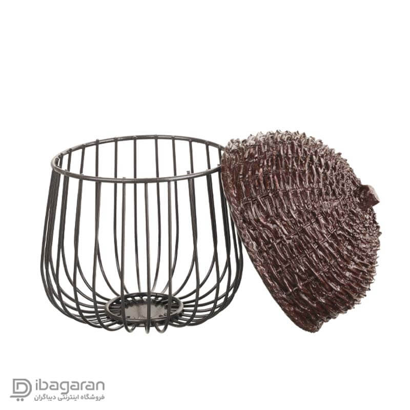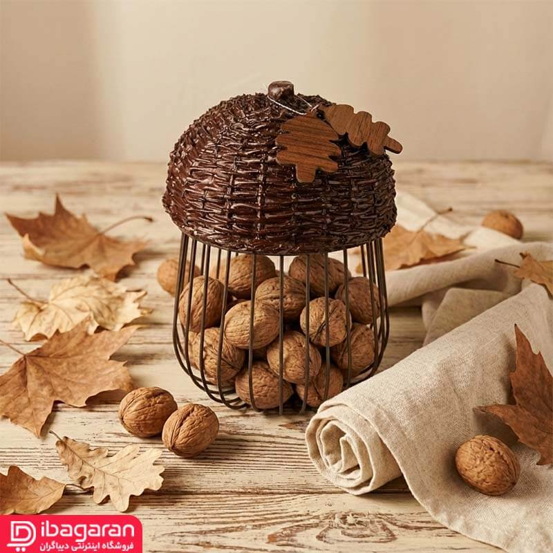 سبد نگهداری مدل بلوط با الهام مستقیم از فرم طبیعی بلوط طراحی شده است و همین موضوع در نگاه اول آن را از سبدهای معمولی متمایز می کند. ترکیب فرم گنبدی بالایی با بافت شبیه پوسته بلوط و بدنه فلزی مشبک در بخش پایینی، حس طبیعت و دست ساز بودن را به فضای آشپزخانه منتقل می کند. این طراحی فقط جنبه تزئینی ندارد، بلکه به شکلی انجام شده که هوا در اطراف محتویات جریان داشته باشد و گردو یا سایر خشکبار در شرایط بهتری نگهداری شوند. محصول در عین متفاوت بودن، اغراق آمیز نیست و به راحتی با فضاهای گرم و کلاسیک هماهنگ می شود.