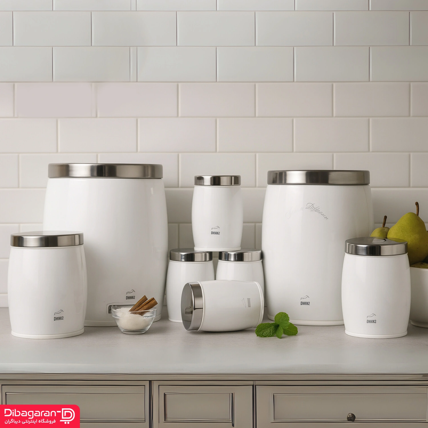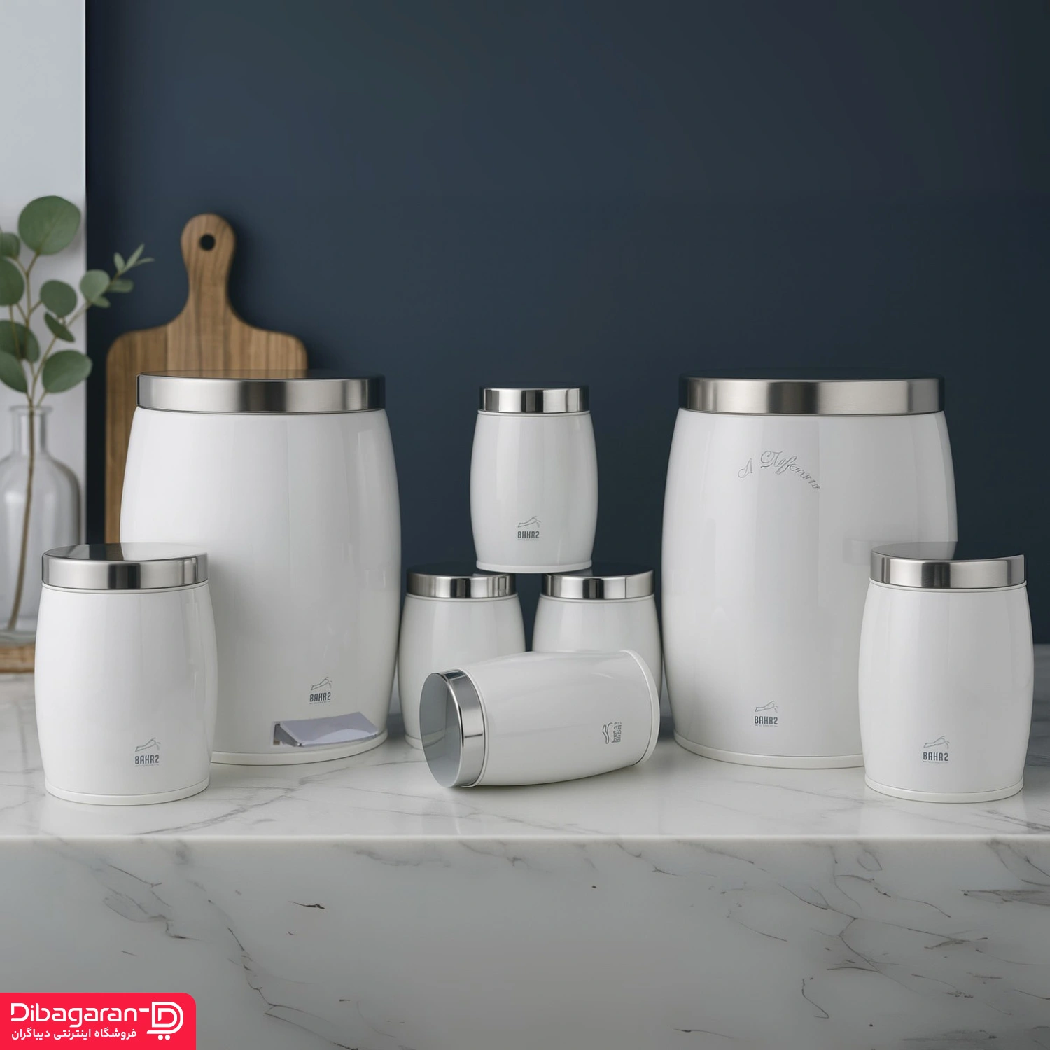 یکی از پر کاربرد ترین ظروف آشپزخانه که وجود آن به فضای خانه شما نظم و زیبایی خاصی میبخشد انواع سرویس آشپزخانه است. شما میتوانید ازسرویس آشپزخانه 8 پارچه بهاز کالا کد 02250 برای نگهداری از انواع حبوبات، برنج، قند و شکر، ادویه و یا غیره استفاده کنید. با وجود این ست زیبا در آشپزخانه خود دیگر نیاز نیست زمان زیادی را صرف پیدا کردن حبوبات یا ادویه کنید زیرا همه آنها به طور منظم در دسترس شما قرار دارند.
