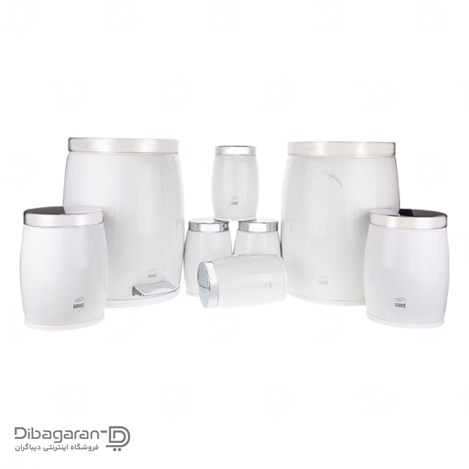 سرویس آشپزخانه 8 پارچه بهاز کالا کد 02250 تمام ویژگی های یک ست زیبا و کامل را دارد.یکی از مهم ترین لوازمی که برای جهیزیه عروس استفاده می شود انواع سرویس آشپزخانه است که اگر ست نیز باشد زیبایی بیشتری به دکور آشپزخانه شما می بخشد. این محصول دارای 8 تکه مجزا شامل سطل زباله و بانکه در سایزهای مختلف برای نگهداری برنج، حبوبات و ادویه می باشد. پس اگر شما هم قصد خرید جهزیه و یا تغییر دکور آشپزخانه خود را دارید ما ست آشپزخانه سفید 8 تکه بهازکالا را به شما معرفی می کنیم.
