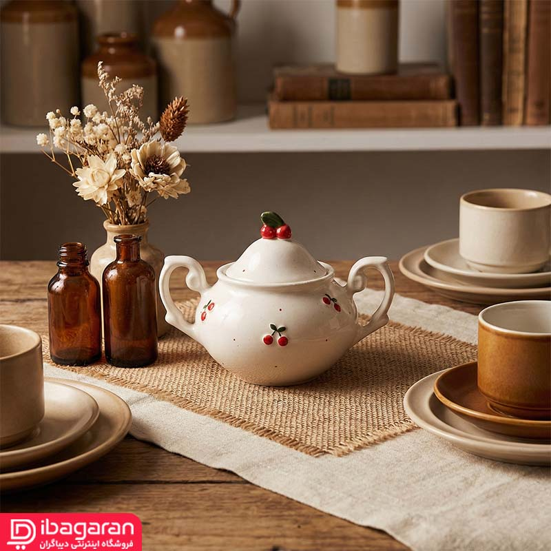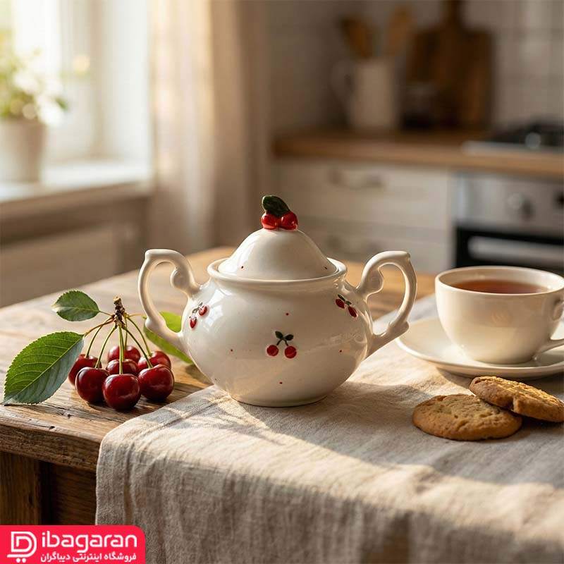 خرید مطمئن قندان سرامیکی دو دسته مدل آلبالو از دیباگران