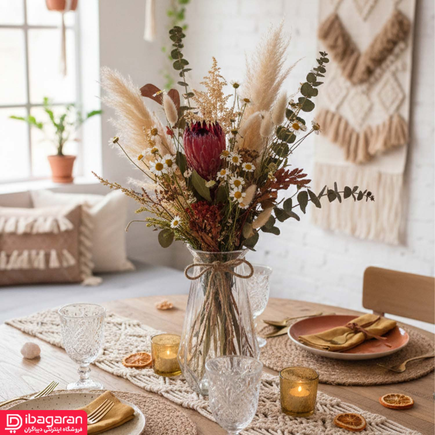 - دربندی تزئینی و طبیعی: بند کنفی دور گلدان، حس گرما و راحتی را به دکور شما میآورد.