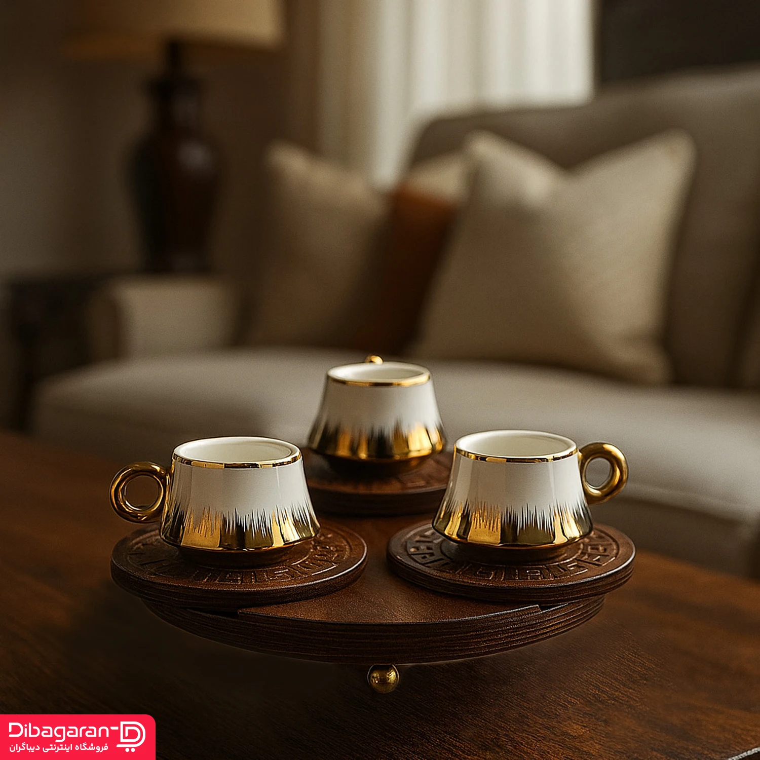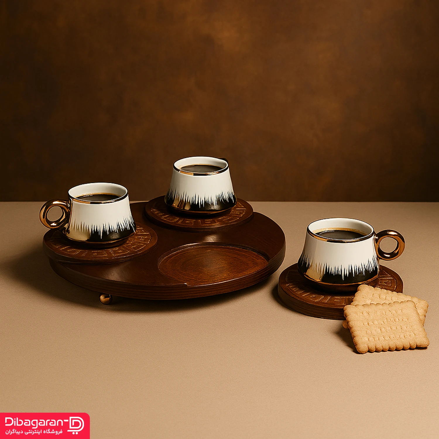 بررسی سرویس قهوه خوری ایندو وود با سه فنجان