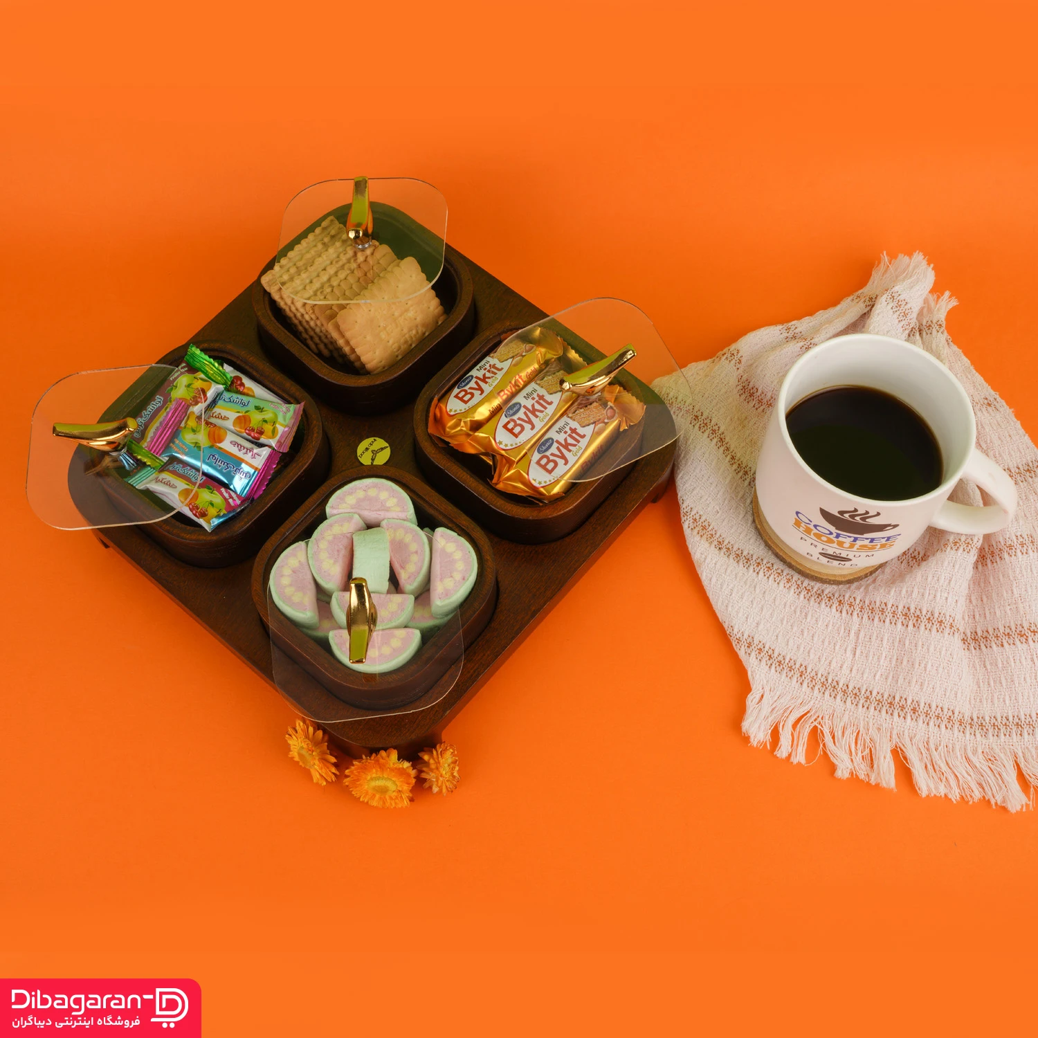 ظرف اردو خوری مربع چهار خانه ایندو وود