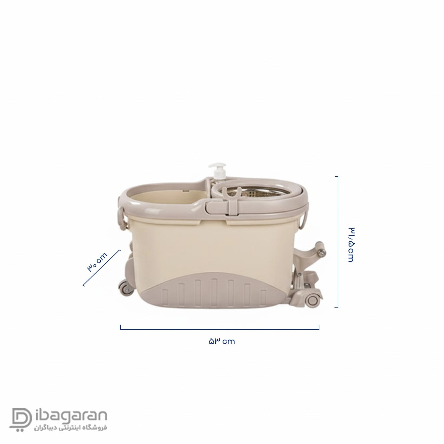 در نگاه اول، طراحی این سطل توجه شما را به سمت خودش جلب میکند. بدنه سطل از پلاستیک فشرده و مقاوم ساخته شده است و ضمن وزن مناسب، استحکام خوبی دارد. قرارگیری بخش شستوشو و بخش خشککن در کنار هم باعث شده است که کاربر بدون جابهجایی اضافه بتواند تی را بشوید و خشک کند. دستهی فلزی و تلسکوپی تی قابلیت تنظیم ارتفاع دارد و هنگام کار حس محکم بودن و تعادل را به شما منتقل میکند. این موضوع برای خانههایی با اعضای مختلف واقعاً کاربردی است.