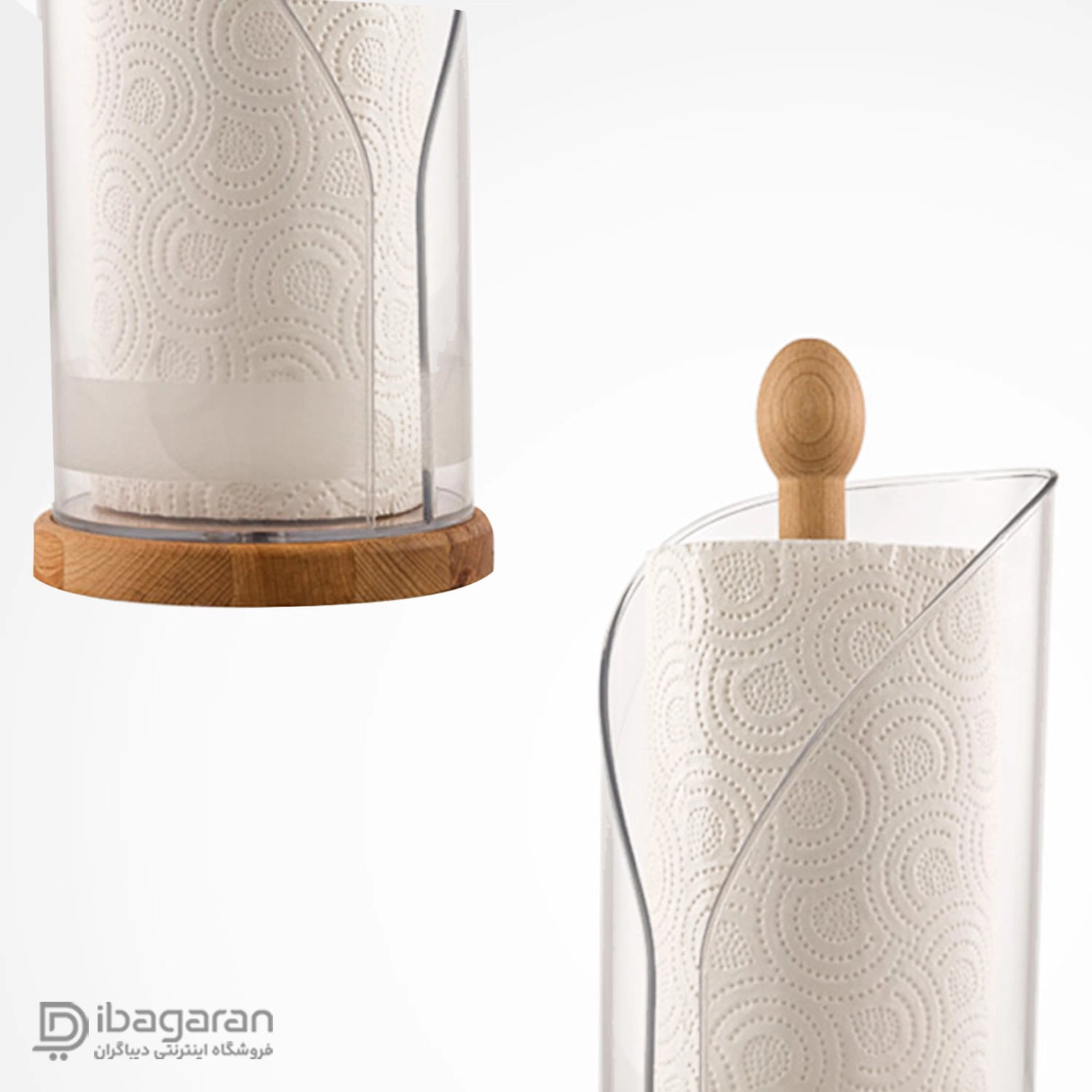 پایه چوبی این جا دستمال کاغذی از چوب مرغوب و مقاوم ساخته شده و با رنگ و بافت طبیعی خود گرما و جذابیت بصری ویژهای به محصول میافزاید. این پایه ضدلغزش طراحی شده و باعث میشود هنگام برداشتن دستمال، محفظه تکان نخورد و ثبات کاملی روی سطح داشته باشد. چوب استفادهشده با روکش مناسب محافظت شده تا در برابر رطوبت آشپزخانه مقاومت بیشتری داشته باشد.