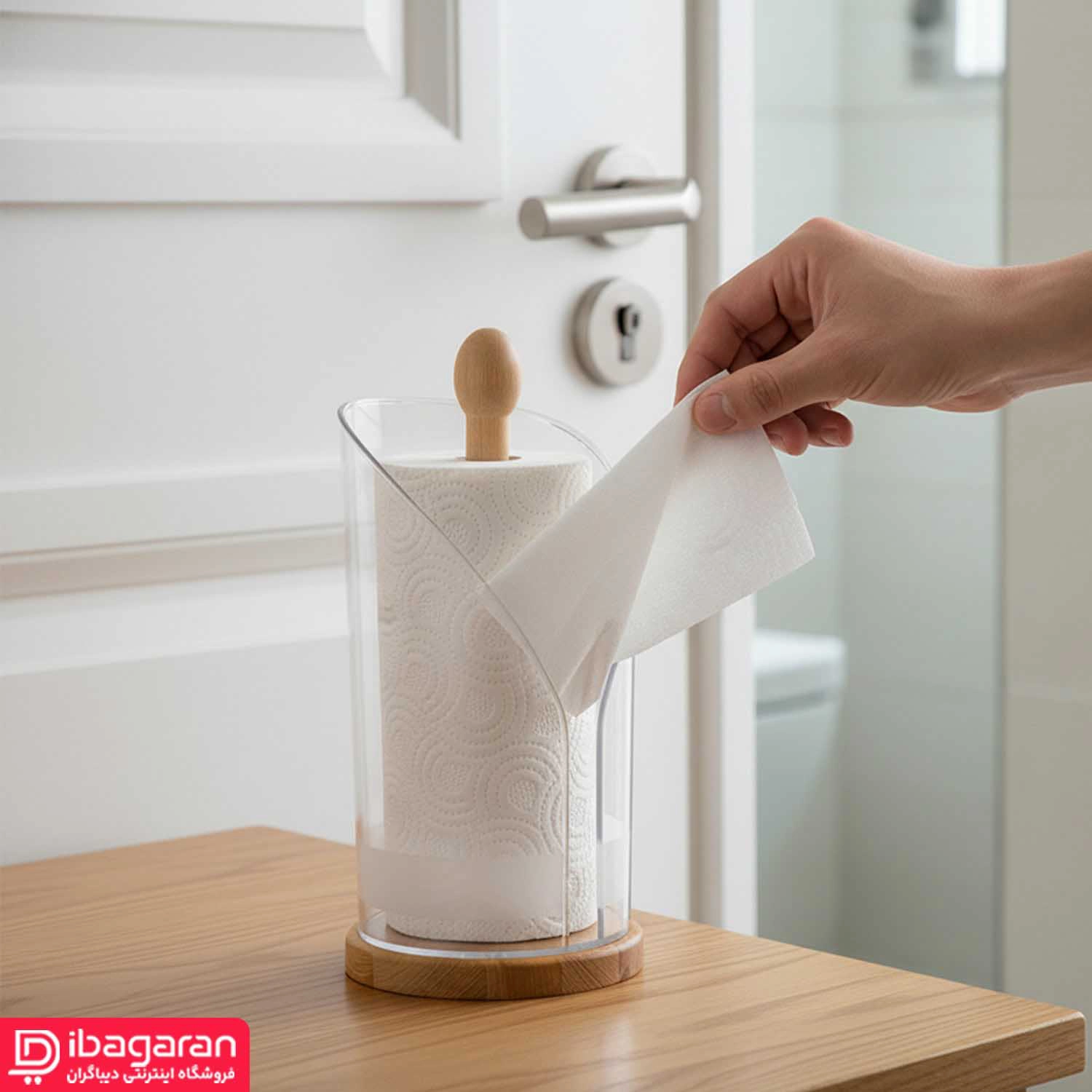 دسته چوبی بالای محصول نیز بهگونهای طراحی شده که تعویض دستمال رولی را بسیار آسان کند. کافی است درپوش چوبی را بلند کنید، رول جدید را داخل محفظه قرار دهید و بهسادگی درپوش را برگردانید. این فرآیند بدون فشار و بدون نیاز به ابزار انجام میشود و همین موضوع محصول را برای استفاده روزمره بسیار راحت کرده است.
