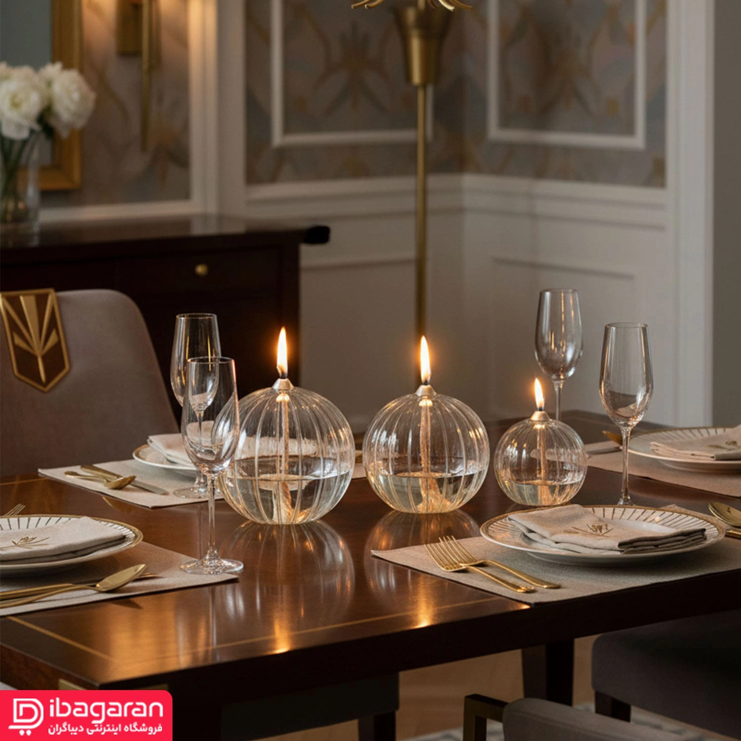 قرار گرفتن سه حباب در کنار هم بهخصوص روی میز پذیرایی، کنسول، میز ناهارخوری یا قفسههای دکوراتیو باعث ایجاد ریتم بصری جذابی میشود که فضای محیط را گرمتر و منسجمتر نشان میدهد. این مدل با پارافین مایع قابل استفاده است و پس از پایان سوخت، مخزن بهراحتی دوباره شارژ میشود. فیتیله کنفی مورد استفاده، شعلهای پایدار، یکنواخت و بدون دود ایجاد میکند و کیفیت روشنایی را بالا میبرد. وجود سری فلزی کوچک روی دهانه نیز باعث میشود فیتیله در جای خود ثابت بماند و شعله شکل منظمتری داشته باشد.