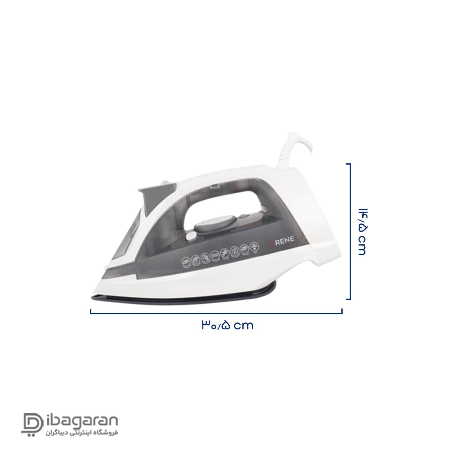 سیستمهای ضدچکه (Anti-Drip) و ضدرسوب (Anti-Calc) از دیگر مزایای این مدل هستند. این دو قابلیت مانع نشت آب در زمان تنظیم حرارتهای پایین و همچنین جلوگیری از تجمع رسوبات در منافذ بخار میشوند. نتیجهی آن، اتوکشی تمیزتر، بدون لکه و افزایش طول عمر دستگاه است. در بخش طراحی، رنه با دقت به جزئیات عمل کرده است. دستهی ارگونومیک دستگاه با انحنای طبیعی دست سازگار است و استفاده طولانی را بدون خستگی ممکن میسازد. وزن متعادل دستگاه، کنترل و حرکت روی لباس را آسانتر میکند. کابل برق بلند با چرخش ۳۶۰ درجه نیز آزادی حرکت بیشتری فراهم میکند و مانع پیچخوردن سیم در حین کار میشود.