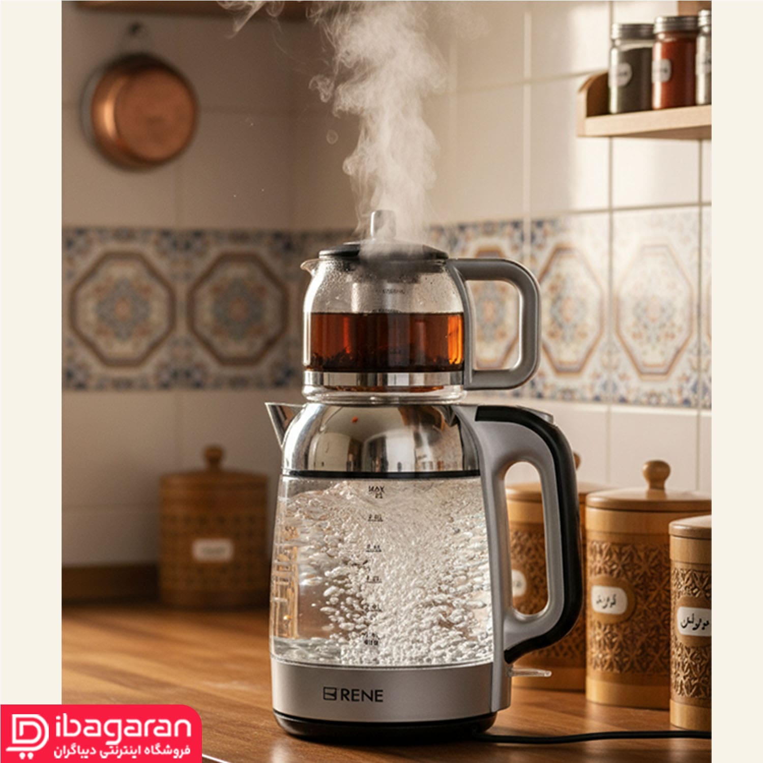 چای ساز رنه مدل RTM 1709 یک انتخاب حرفهای برای کسانی است که به طعم واقعی چای و طراحی مدرن در آشپزخانه اهمیت میدهند. این مدل با ترکیب شیشه شفاف و استیل ضدزنگ براق، جلوهای لوکس و چشمنواز دارد که هم در خانههای مدرن و هم کلاسیک بهزیبایی میدرخشد. بدنهی شیشهای مقاوم این دستگاه، علاوه بر زیبایی، امکان مشاهدهی فرآیند جوش آمدن آب و دم کشیدن چای را فراهم میکند. ظرفیت کتری ۲.۵ تا ۳ لیتر و قوری حدود ۱ لیتر، این مدل را برای استفادهی خانوادگی یا پذیرایی از مهمانها ایدهآل کرده است.
