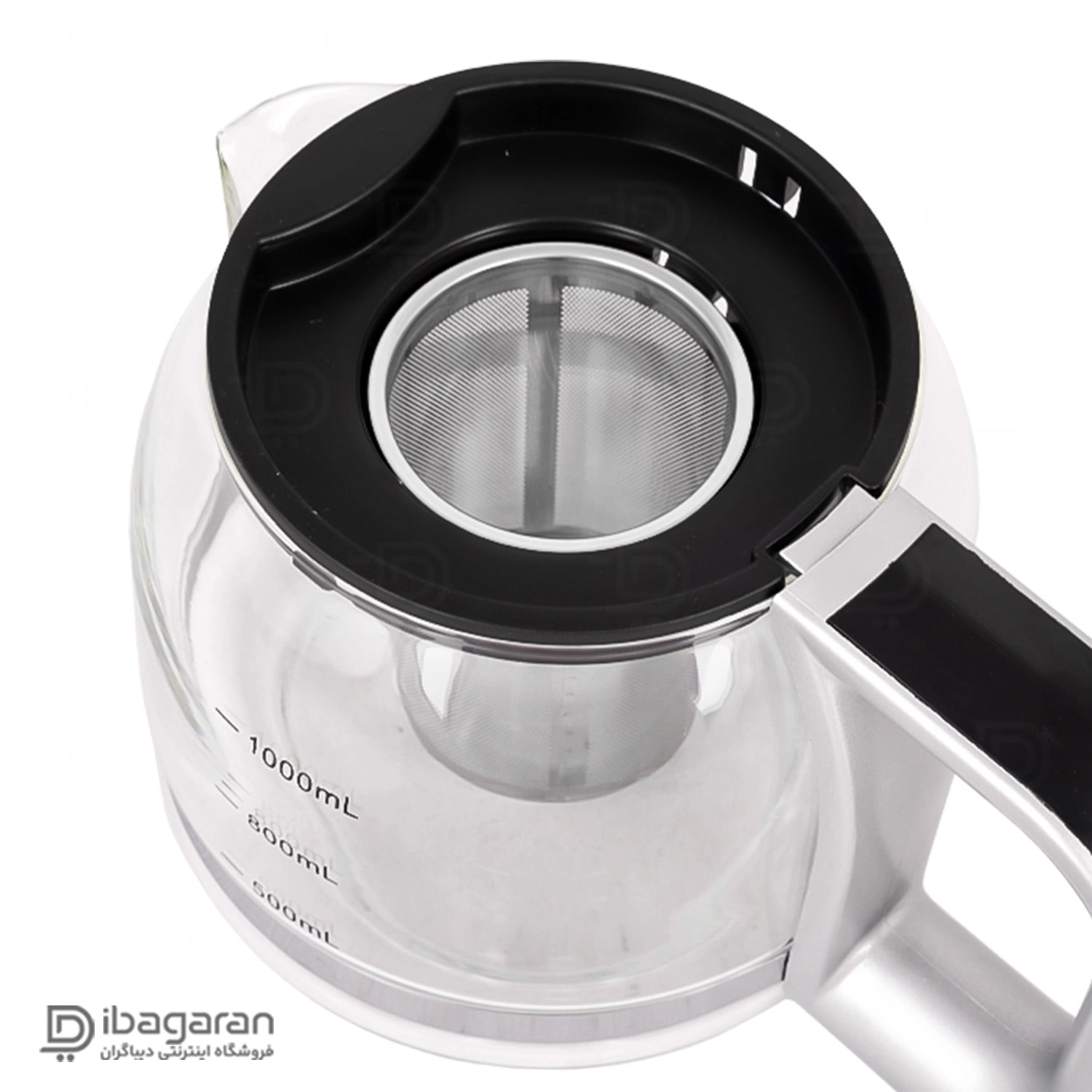 پایهی چرخان ۳۶۰ درجه باعث میشود بتوانید کتری را از هر زاویهای روی پایه قرار دهید و بدون محدودیت از هر سمت آن استفاده کنید. دستههای مقاوم و ارگونومیک دستگاه نیز در برابر حرارت ایمن هستند و حمل و ریختن چای را آسانتر میکنند. قوری از جنس شیشهی مقاوم به حرارت ساخته شده و دارای صافی استیل ضدزنگ است تا برگهای چای یا گیاهان دمنوش جدا بمانند و مایع زلال و خوشرنگی در فنجان ریخته شود. تمامی قطعات دستگاه از قوری و صافی گرفته تا کتری، قابل جدا شدن و شستوشو هستند، بنابراین تمیزکردن چای ساز بعد از هر بار استفاده بسیار راحت خواهد بود.