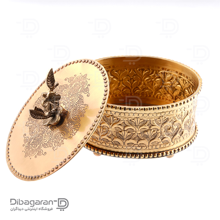 محصولی که می بینید شکلات خوری برنجی در دار ریما کد R-98722 است. در این محصول اتصال دستگیره درپوش و پایه این محصول بسیار محکم بوده و به راحتی باز نمیشود. این محصول که یکی از ظروف سرو و پذیرایی به شمار میآید دارای ظرافت بالایی در قلمکاری میباشد که زیبایی دو چندانی را به این محصول بخشیده. این محصول هم به عنوان ظروف دکوری و هم برای استفاده کاربری مناسب است. این شکلات خوری علاوه بر ظرافت و کیفیت ساخت بالا، دارای یک درپوش بسیار شیک است که زیبایی کار را دو چندان کرده است.