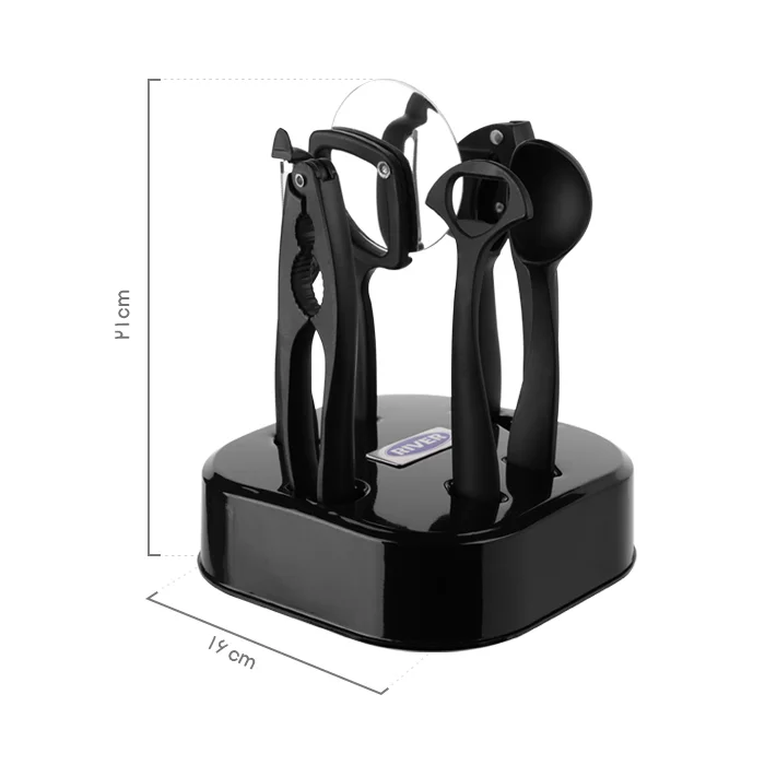 ست ابزار آشپزخانه یکی از وسایل مهم در هر خانه است زیرا علاوه بر کاربردهای متفاوت نمای زیبایی به آشپزخانهی شما میدهد. بنابراین ما استفاده از این ابزار آشپزخانه را به شما پیشنهاد میدهیم که شامل بادام شکن، پوست کن، ابزار مخصوص برش پیتزا، قاشق اسکوپ بستنی و درب باز کن بطری برای انجام کارهای مختلف شما در آشپزخانه است.