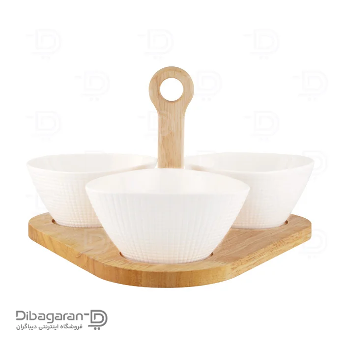 محصولی که مشاهده میکنید اردو خوری 3 عددی چوب چینی ریور کد 2720D است. اردو خوری 3 خانه چوب چینی ریور در مدل گرد شکل موجود است. اردو خوری چوب چینی، یکی از ظروف پذیرایی است که دارای پیالههایی از جنس چینی، به همراه یک زیره چوبی از جنس بامبو است. سینی چوبی که زیر این ظرف تعبیه شده علاوه بر ظاهر زیبا، بلند کردن و جابهجایی این ست از ظروف را آسان میکند. این اردو خوری با ترکیب زیبای چوب بامبو و چینی سفید جلوه خاصی به میز پذیرایی میبخشد.