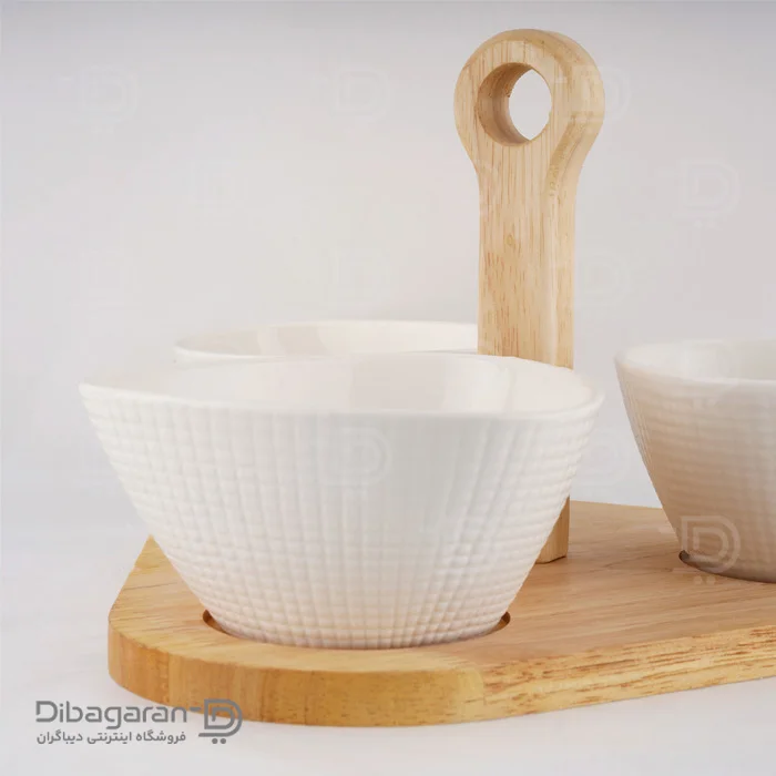 ظروف پذیرایی و محصولات چوب چینی با ترکیب رنگ چینی سفید و چوب، زیبایی چشمگیری به دکوراسیون داخلی میبخشند. که نظر و سلیقه افراد مختلف را به خود جلب کرده و طرفدارن زیادی پیدا کرده اند. اردو خوری 3 عددی چوب چینی ریور کد 2720D و دیگر ظروف در سایت فروشگاه دیباگران، دارای اقلام مختلف از جمله انواع ظروف دو طبقه، جای دستمال آشپزخانه، سالاد خوری، اردو خوری چوبی، ظروف ست شیر و شکر، کره خوری، ست آبلیمو و نمک، پاسماوری، ظروف جا ادویهای، ست پذیرایی و جای دستمال است که به راحتی قابل ست کردن باهم هستند.