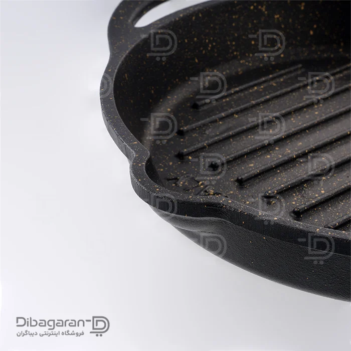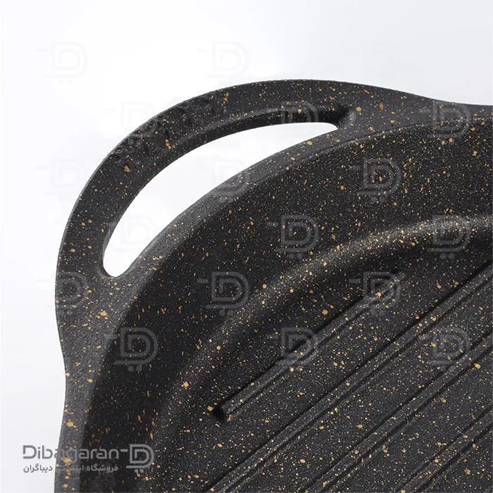 این محصول علاوه بر کیفیت بالا دارای پوشش دو طرفهی تفلون گرانیت میباشد. سطح داخلی آن شیاردار میباشد تا بتوانید روغن و آب مواد غذایی را جدا کنید و یا بر روی آن خط بیاندازید. برای راحتی استفاده از این تابه، دو دستگیره در طرفین محصول تعبیه شده است که علاوه بر کارایی، زیبایی محصول را دو چندان کرده است.