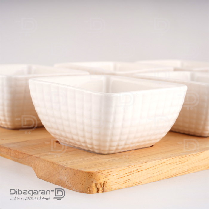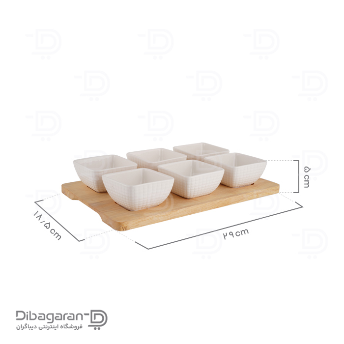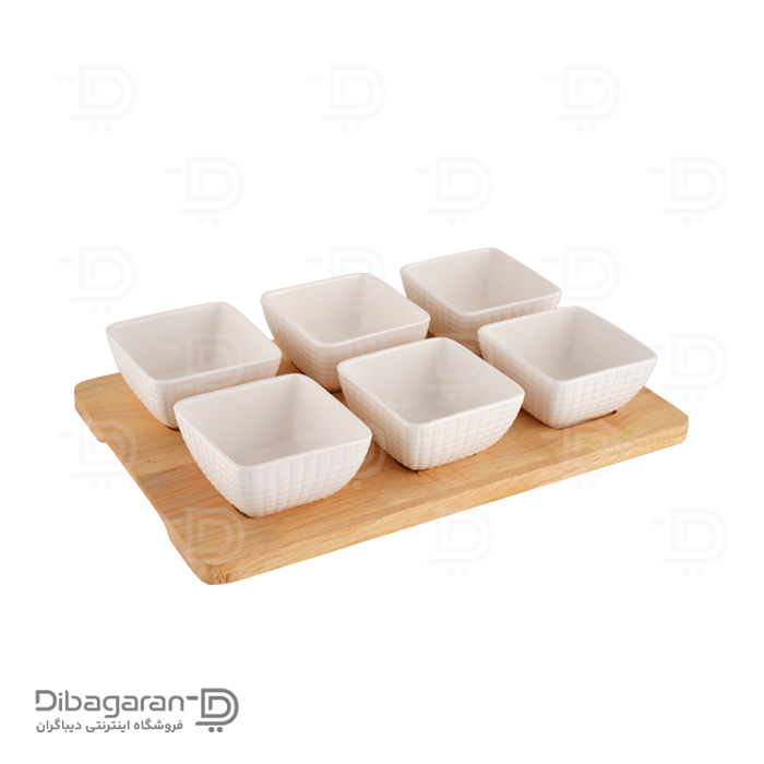 محصولی که مشاهده میکنید اردو خوری 6 عددی چوب چینی ریور کد 2881-08D است. اردو خوری 6 خانه چوب چینی ریور در مدل مربع شکل موجود است. سینی چوبی که زیر این ظرف تعبیه شده علاوه بر ظاهر زیبا، بلند کردن و جابهجایی این ست از ظروف را آسان میکند. این اردو خوری با ترکیب زیبای چوب بامبو و چینی سفید جلوه خاصی به میز پذیرایی میبخشد. اردو خوری چوبی، یکی از ظروف سرو و پذیرایی است که دارای پیالههایی از جنس چینی، به همراه یک زیره چوبی از جنس بامبو است.