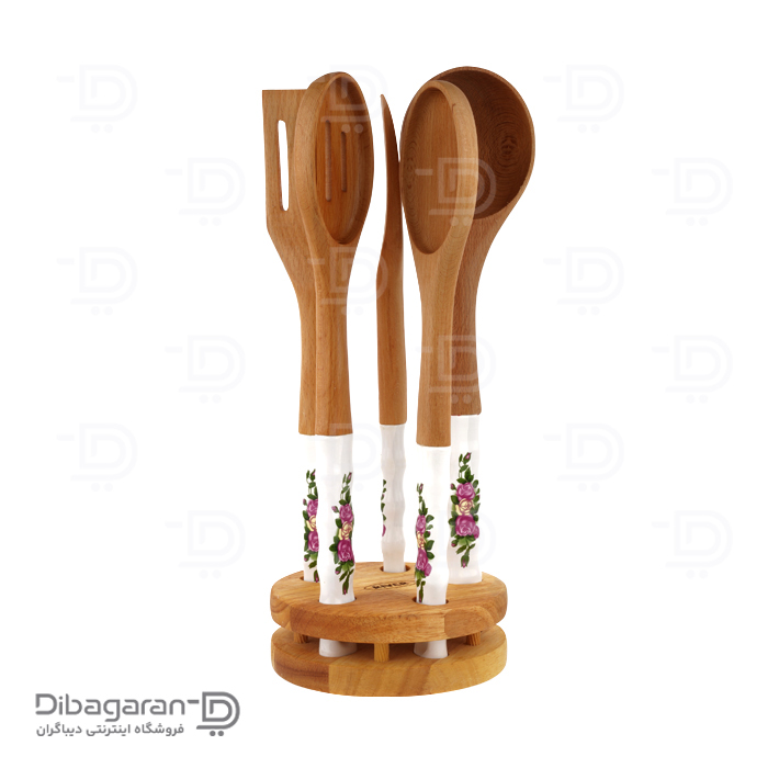 چوب از آسیب رساندن به ظروف شما جلوگیری میکند که یکی از مهم ترین ویژگی های این وسایل آشپزخانه می باشد. این ابزار آشپزخانه دارای یک استند نگهدارنده چوبی میباشد. مواد اولیه به کار رفته در این محصول ساخته شده از مواد غیر سمی، بی بو و سازگار با محیط زیست است. این مجموعه متنوع که شامل انواع کفگیر ملاقه با کاربری های متفاوت است. در برابر درجه حرارت و سرما مقاوم هستند.