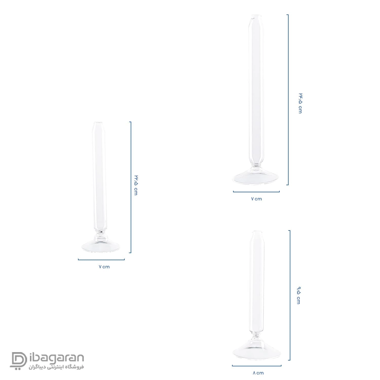 شیشه ضخامت استانداردی دارد و سطح آن کاملاً صاف و بدون موج است، که همین موضوع باعث میشود نور و رنگ داخل شمعدان خیلی تمیز و یکدست دیده شود. پایهی پهنشدهی انتهای هر قطعه، باعث میشود شمعدان کاملاً روی میز ثابت بایستد و کوچکترین لقزدنی نداشته باشد. طراحی سبک و مینیمال این پایهها باعث شده بدون اینکه توجه را از بدنهی شمعدان بگیرد، به استحکام و زیبایی محصول کمک می کند.
