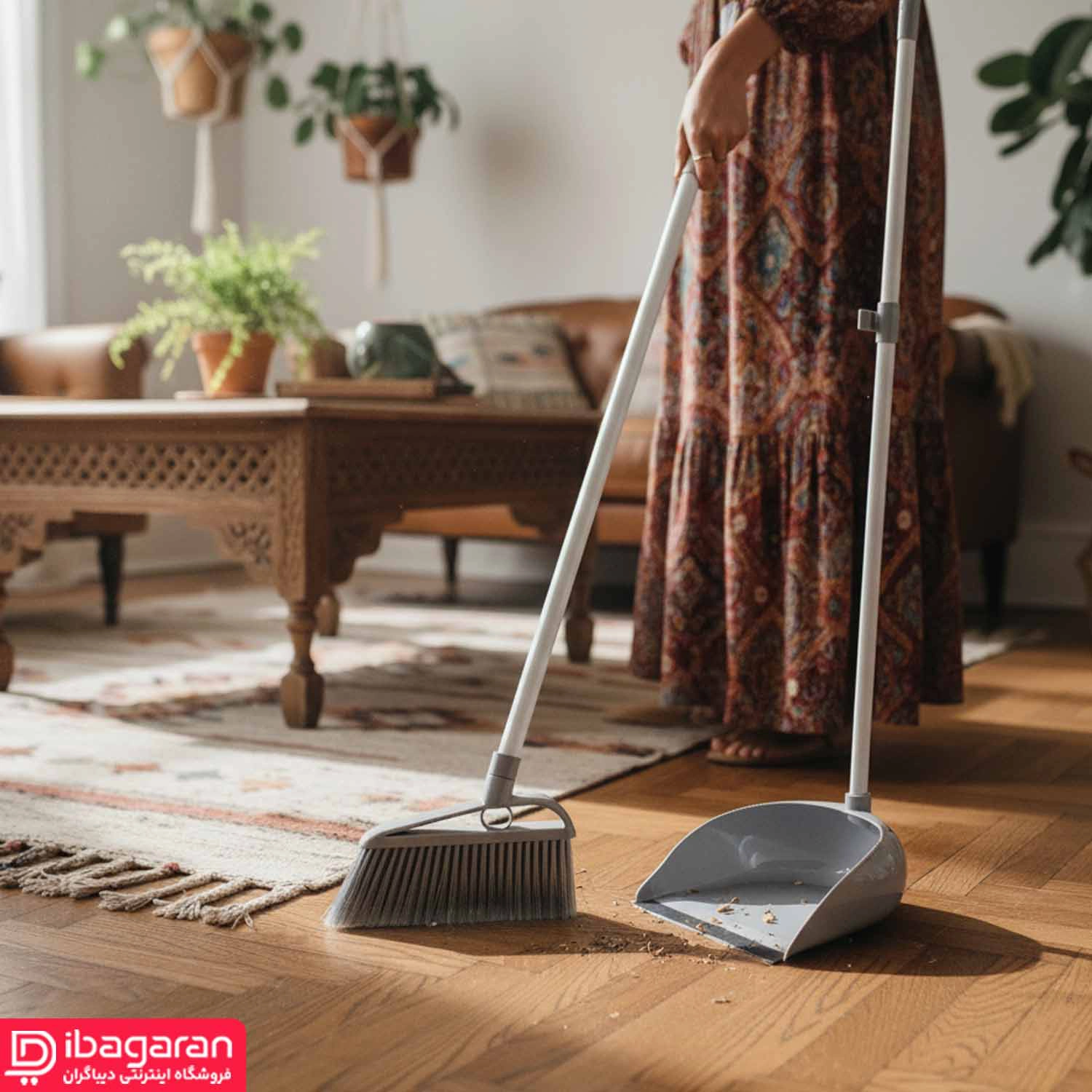 این مدل تنها محدود به خانه نیست. وزن سبک، طراحی عمودی و قابلیت ایستادن راحت کنار دیوار باعث شده برای فضاهای اداری، فروشگاهها، مغازهها و حتی محیط های نیمهصنعتی هم انتخاب خوبی باشد. ظاهر مرتب و رنگبندی سادهاش هم باعث میشود بهراحتی با دکور هر محیطی هماهنگ شود؛ در استفادهی روزمره، این محصول دقیقاً همان حس “ابزار همیشه دمدست” را دارد. جارو نرم روی زمین حرکت میکند، خاکانداز خوب میچسبد و موقع جمع کردن زباله را سریعتر میکند.