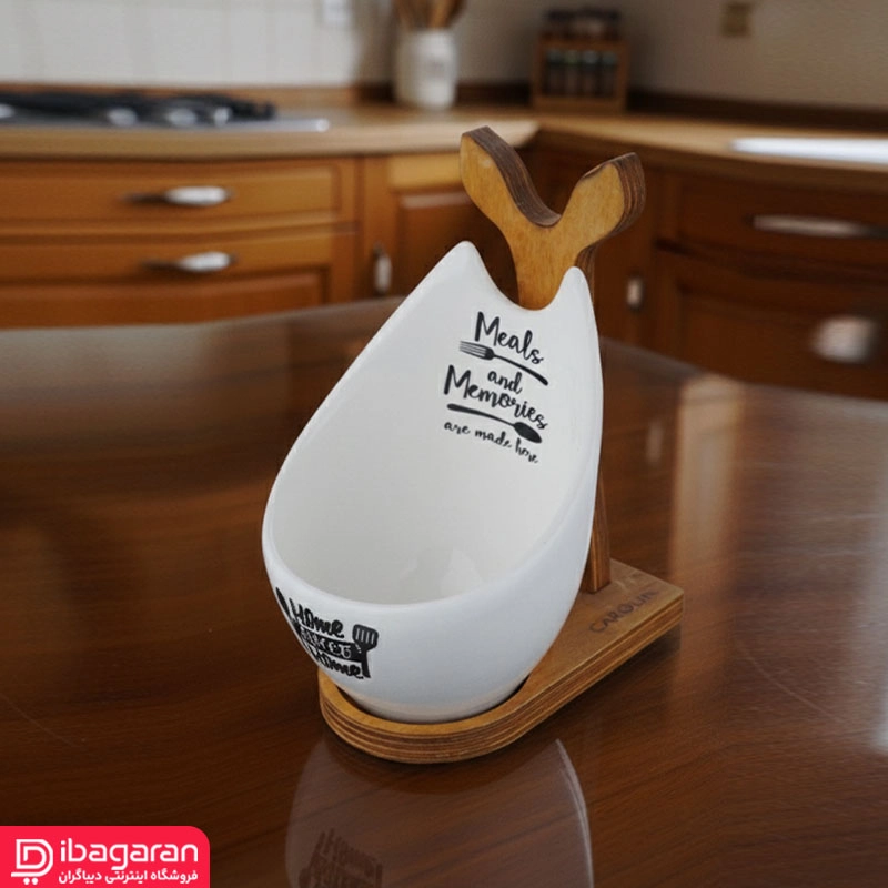پایه چوبی این مدل فقط برای زیبایی نیست؛ کاملاً sturdy و محکم است و باعث میشود استند هنگام گذاشتن یا برداشتن قاشق تکان نخورد. ترکیب چوب طبیعی با سرامیک سفید، جلوهای گرم و جذاب به آشپزخانه میدهد و آن را به یک آیتم دکوراتیو واقعی تبدیل میکند. سرامیک استفادهشده در این محصول کاملاً ضد لک است و خیلی راحت تمیز میشود. حتی اگر سس، روغن یا غذای آبکی داخلش چکه کند، کافی است با یک اسفنج نرم یا حتی یک دستمال نمدار آن را تمیز کنید. هیچ لکهای روی لعاب باقی نمیماند و مثل روز اولش شیک و تمیز باقی میماند. پایه چوبی نیز در برابر رطوبت و شستوشو مقاومت خوبی دارد و با گذشت زمان تغییر شکل نمیدهد.