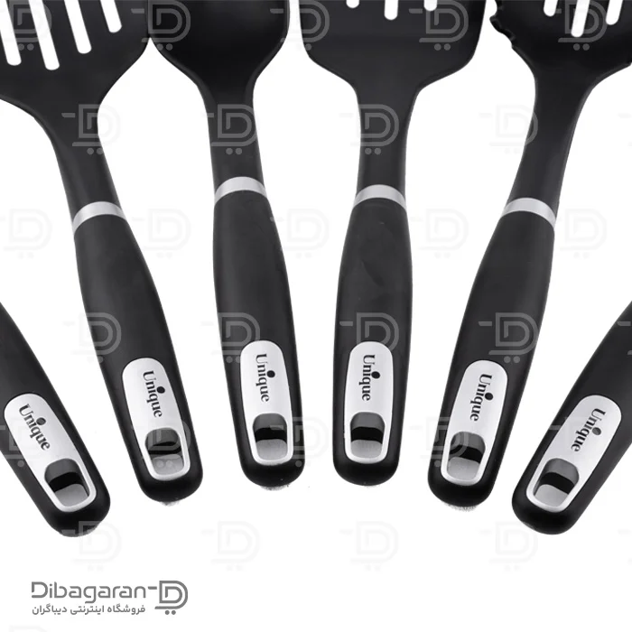 سرویس کفگیر و ملاقه سیلیکونی یونیک کد UN-1160 با دسته دسته پلاستیکی، از بهترین متریال و با کیفیت عالی ساخته شده است. این ست با کارایی بالا به همراه یک پایه برای نگهداری کفگیر و ملاقهها، قابل خریداری است. این ست ابزار آشپزخانه، نچسب و به همین دلیل برای استفاده در ظروف پخت و پز گرانیتی، چدن، تفلون و… ایدهآل هستند و چون خاصیت انعطاف پذیری دارد.